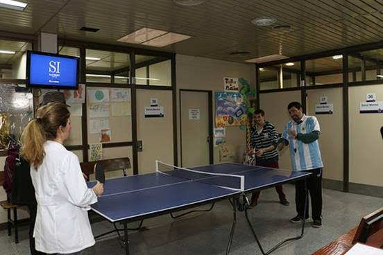 Médicos versus pacientes se baten a duelo en un desopilante partido de tenis de mesa. El escenario es el Área de Salud Mental del Hospital Central de San Isidro. La nueva mesa de ping pong es la gran atracción de los talleres gratuitos para pacientes con padecimientos mentales.