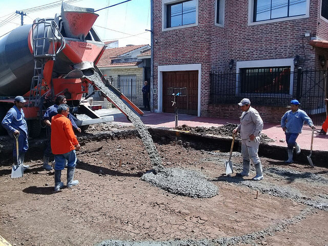 Las obras, de unos 350 metros cuadrados, se realizan mediante el tendido de una losa de hormigón rico de 22 centímetros de espesor con malla de acero.