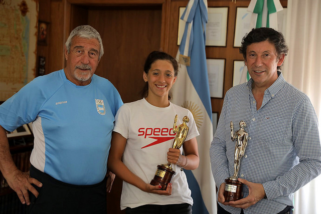 El intendente de San Isidro, Gustavo Posse, recibió en su despacho a Delfina Pignatiello, la nadadora sanisidrense que ganó el premio Olimpia de Oro como mejor deportista de 2017.