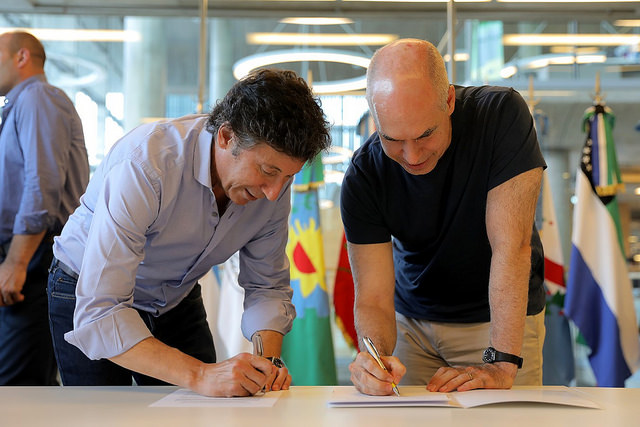 En el encuentro también firmaron su convenio con la Ciudad de Buenos Aires, los intendentes Néstor Grindetti (Lanús), Martiniano Molina (Quilmes), Nicolás Ducoté (Pilar), Julio César Garro (La Plata), José Corral (Ciudad de Santa Fé), Rodolfo Suárez (Ciudad de Mendoza) y Sergio Varisco (Paraná, Entre Ríos).