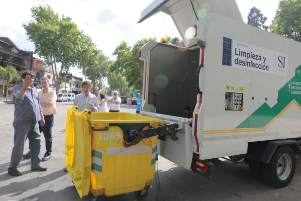 El Municipio incorporó 4 camiones compactadores con almeja (recorren centros comerciales vaciando contendores), minibarredoras para veredas, 2 desobstructores y un camión de limpieza y desinfección de última generación para lavar en minutos los contendores.