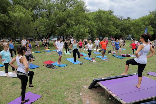 La propuesta, ideal para relajarse, disminuir el estrés y mejorar el estiramiento de los músculos, también invitó a todos los vecinos que pasaban por la zona a sumarse.
