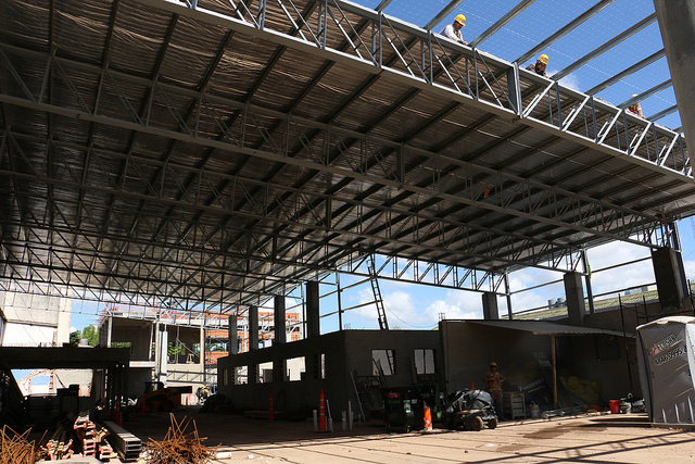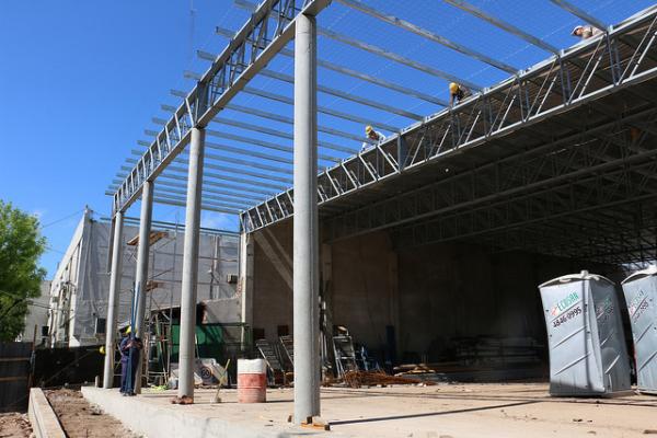 Actualmente, se trabaja en la colocación de aberturas y en la construcción del entrepiso metálico.