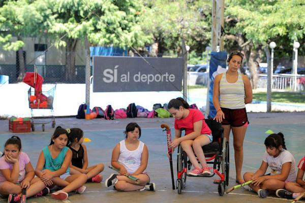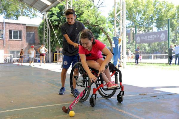 Ese mensaje lo representan a la perfección Camila Lorenzo que traslada por la cancha a Kimberley Herrera, que desde una silla de ruedas palo de hockey en mano mejora su pegada. Ambas disfrutan el momento.