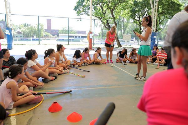 Las chicas de la colonia de verano del Campo de Deportes Nº1 y las del Centro Municipal de Actividades Especiales (CeMAE) compartieron una clínica de hockey integrador como paso previo a la realización de partidos.