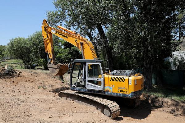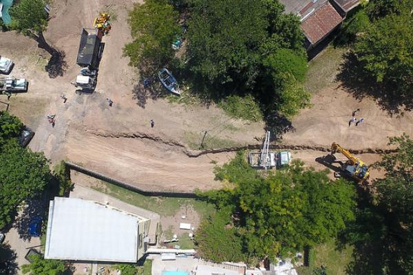 El camino tendrá boulevard y forestación. Para poder realizarlo hay que correr el albardón unos cinco metros hacia el interior del predio, por lo que se están realizando los movimientos de suelo necesarios.