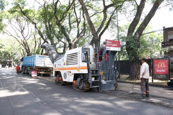 Los trabajos comprenden el fresado de la carpeta asfáltica existente; el tendido de un nuevo encintado asfáltico de 6 cm de espesor; la limpieza de conductos pluviales que hay debajo de la avenida; la reparación y recuperación de cordones y cunetas.