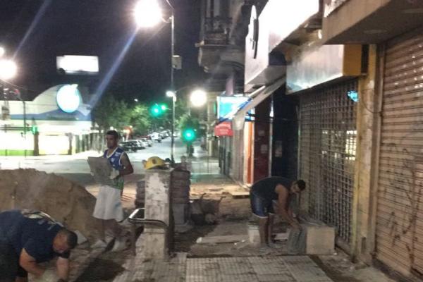 Con trabajos nocturnos el Municipio avanza en la renovación del centro comercial a cielo abierto de San Isidro. Las nuevas veredas se construyen en Belgrano, entre las vías y el Mástil, y un tramo de Rivadavia.