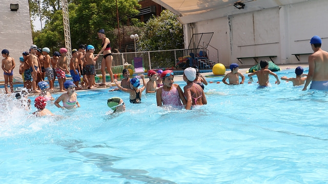 En la pileta, Lucas Giusto, de seis años, se divertía con otros chicos mientras aprendía diferentes estilos para nadar. “Hice nuevos amigos acá, nos reímos mucho, comemos juntos y estamos todo el día jugando”, dijo.
