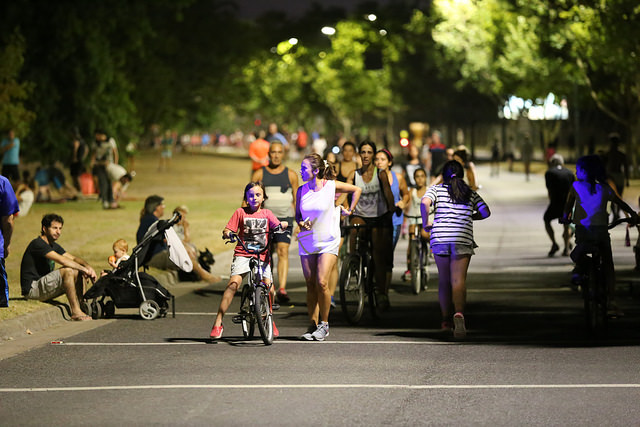 A lo largo de 14 cuadras, la gente puede realizar deportes y actividades físicas libremente en plena avenida. La imagen se repite una y otra vez: niños patinando en rollers o andando en bicicleta y adultos corriendo o caminando. Mientras, una profesora da las indicaciones para que cientos de personas mueven su cuerpo al ritmo de música caribeña como la bachata, reggaetón, salsa y merengue. En otro sector, prefieren acondicionar su físico con circuitos de agilidad y velocidad en conos o fortalecer su abdomen sobre colchonetas.