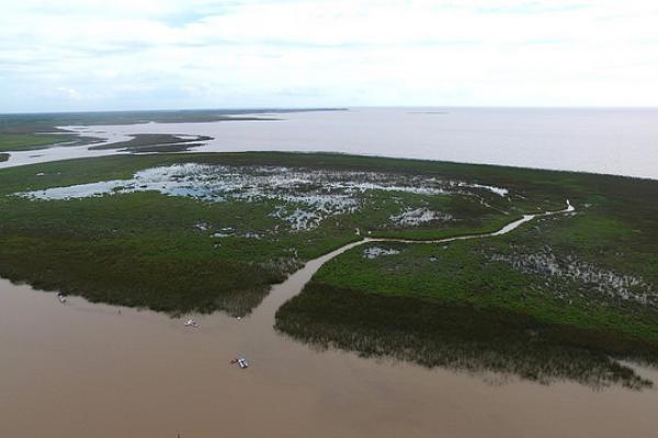 Cuando el río llega a su desembocadura, la velocidad del agua disminuye y los sedimentos tienden a irse al fondo. Se forman así bancos de sedimentos que van creciendo continuamente. Estas zonas de desembocadura donde se acumulan sedimentos se llaman deltas, y luego de varios siglos o miles de años, los depósitos de sedimentos llegan a formar islas.