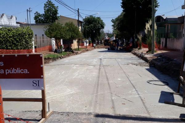 Las obras, de 700 metros cuadrados, se realizan mediante el tendido de una base de hormigón pobre de 12 cm de espesor y una carpeta de rodamiento de hormigón rico de 18 centímetros reforzado con malla de acero.