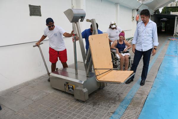 En ese contexto, recientemente el Municipio adquirió una nueva silla acuática que permite a los vecinos que tienen Parkinson, problemas de movilidad o que se recuperan de un ACV poder ingresar sin dificultades a la pileta del Campo.