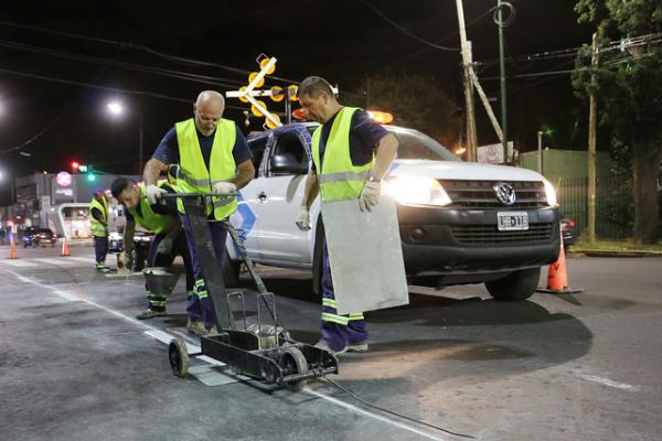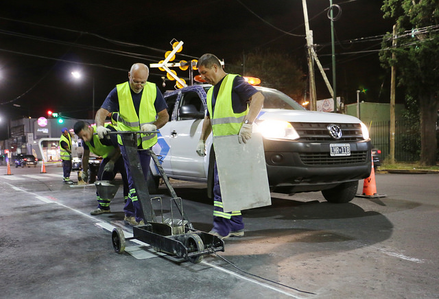 El Municipio de San Isidro realiza trabajos de pintura de sendas peatonales y de demarcación de carriles en la avenida Márquez, entre Blanco Encalada y Fleming. Estas tareas se desarrollan durante la noche para evitar inconvenientes en el tránsito.