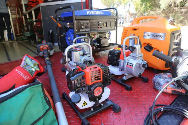 El intendente Gustavo Posse presentó junto al director de Defensa Civil local, Alejandro Marchetti, las nuevas herramientas que incluyen: Grupos electrógenos, martillos de demolición, sierras sable para cortar madera y metales, motosierras jirafa para cortar en altura, entre otros elementos de protección y señalización.