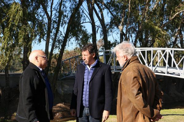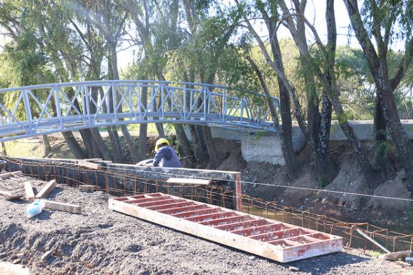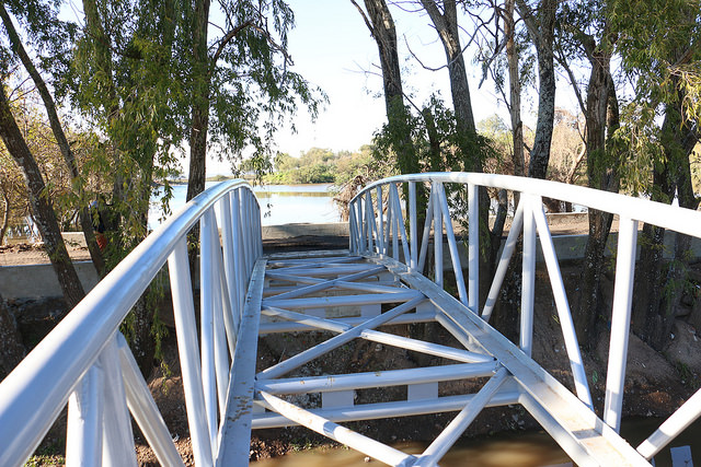 El secretario de Obras Públicas, Bernardo Landívar, precisó: “Colocamos este puente de estructura metálica que cruza el arroyo y nos lleva al muelle flotante que está en ejecución, prácticamente terminado. Una vez montado por una escalera se accede a una plataforma flotante que sube y baja de acuerdo al nivel del río y es donde se podrá atracar las lanchas”.