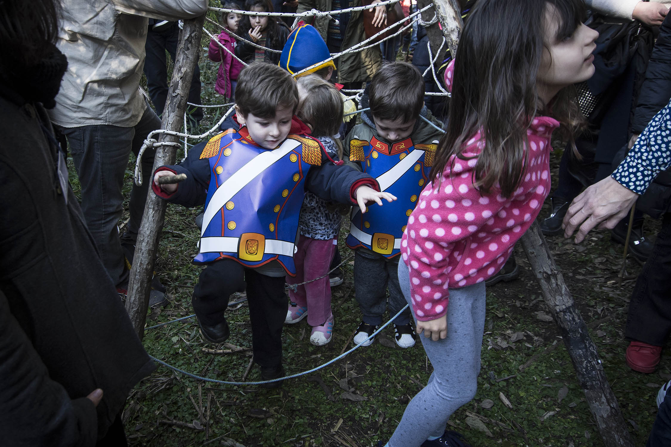 Las dos columnas, al mando del Libertador (Juan d’ André) y de Las Heras (Manuel Boerr), se pusieron en marcha y hubo que saltar troncos, bajar la cabeza para no chocar con ramas, hacer un alto para refrescarse y, para los más chicos, pasar por un pequeño puente y recorrer un tubo de plástico.