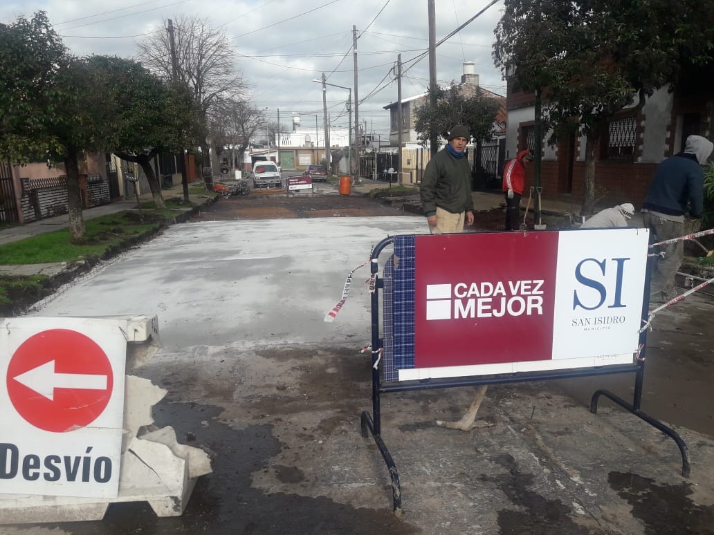 El Municipio de San Isidro realiza tareas de bacheo de hormigón en la calle Mazza, entre Amancio Alcorta y Fray Cayetano Rodríguez, en Villa Adelina.