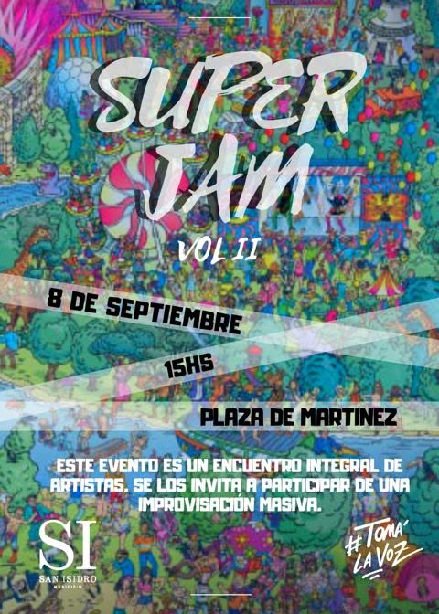 El sábado 8 de septiembre, a las 15:00, en la plaza 9 de Julio de Martínez (Monseñor Larumbe y Necochea) se realizará la segunda edición de improvisación artística “Super Jam”.
