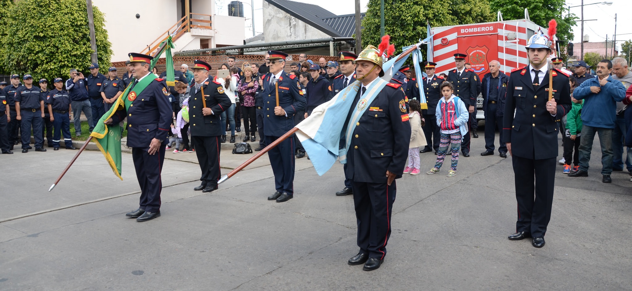 El intendente Gustavo Posse participó de la celebración, a la que también asistieron familiares de los bomberos, concejales, funcionarios municipales, representantes de las Fuerzas Armadas y el Ejército, ex combatientes de Malvinas y grupos de scouts.