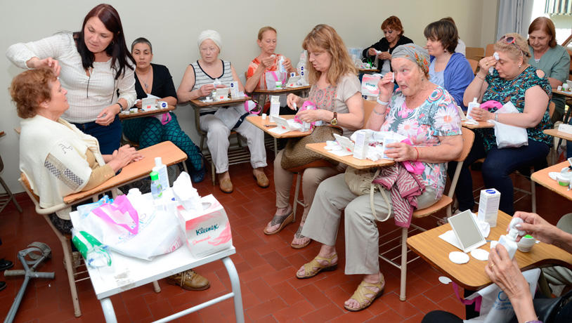 Y agregó: “Al comienzo de la clase entregamos un kit con productos de cosmética y perfumería con maquillajes y cremas para que usen en el taller y después se lleven de regalo. Es muy lindo ver cómo comparten un momento de distensión con otras mujeres que están pasando por lo mismo”.