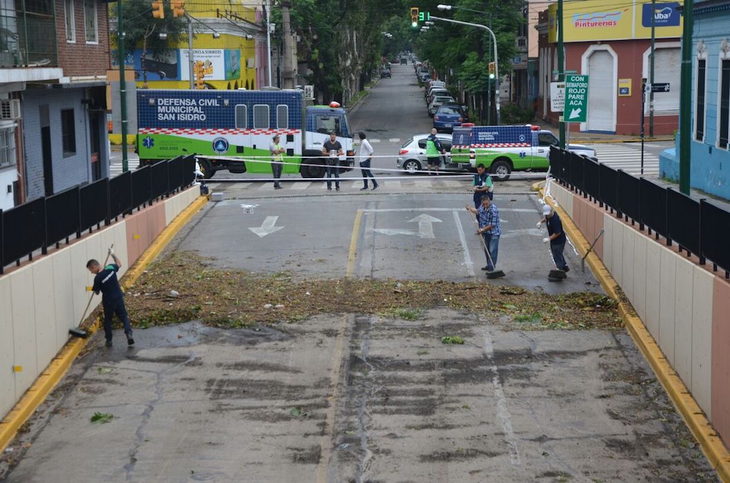 Cuadrillas de Espacio Público levantan los árboles caídos, llevan adelante tareas de limpieza y hacen un relevamiento de los postes desplomados en las distintas zonas, para hacer las gestiones ante Edenor con el objetivo de que se restablezca el suministro de luz donde hubo cortes. Las zonas afectadas fueron cerradas al tránsito de forma provisoria para evitar peligros.