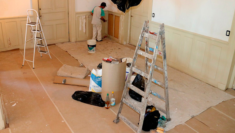 Las obras que se están realizando contemplan el picado y reparación de revoques en paredes, pintura, restauración de la boisserie y otras operaciones húmedas en el sector afectado.