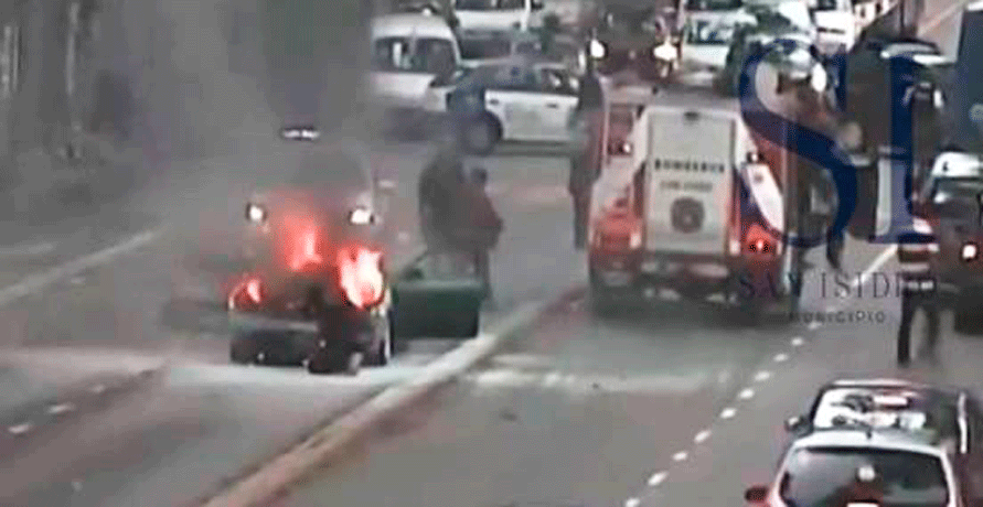 El hecho comenzó cuando desde el Centro de Monitoreo divisaron, a través de una de las más de 1.300 cámaras instaladas en el distrito, que sobre Av. Márquez, metros antes de llegar a Av. Centenario, un vehículo quedó detenido en el semáforo y que, a los pocos segundos, comenzó a salir humo del mismo.