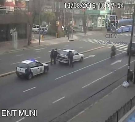 A través de una de las 130 cámaras de seguridad distribuidas en el partido, observaron al Renault 19 circulando por Av. Santa Fe hacia Unidad Nacional. Los móviles del Patrullaje Municipal empezaron a seguirlos por Santa Fe y luego por Centenario. Metros antes de llegar a Terrero, el móvil municipal Nº 32 logró interceptarlos y detenerlos. Se recuperaron los objetos robados del local comercial.