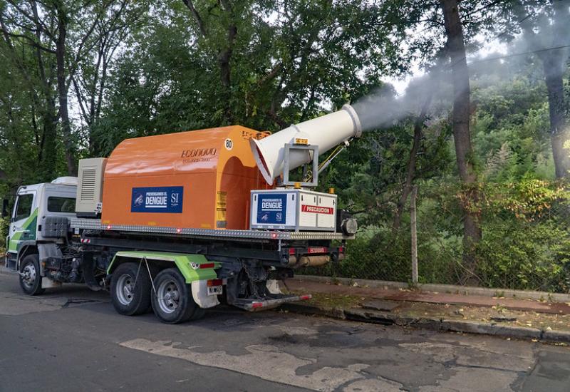 Leandro Martín, subsecretario de Espacio Público, señaló: "Desde el área de Control de Vectores hacemos fumigaciones espaciales durante la madrugada en todas las localidades. Para eso, tenemos maquinaria propia y un camión eco ambiental de última generación con una turbina que permite un gran alcance. El camión tiene una capacidad de carga de 7.000 litros de líquido con productos químicos sustentables para el medio ambiente”
