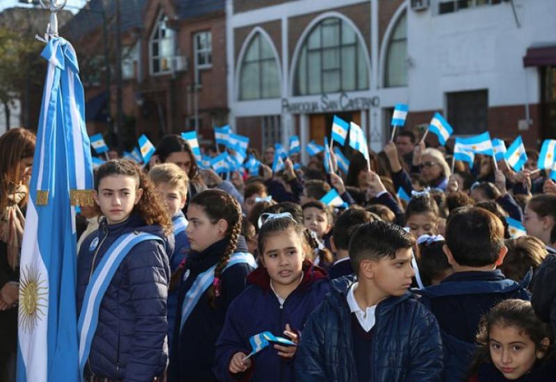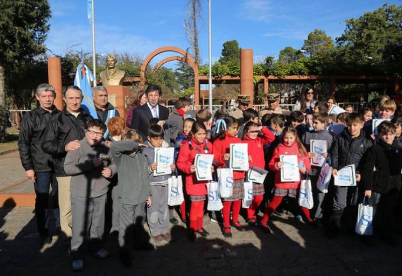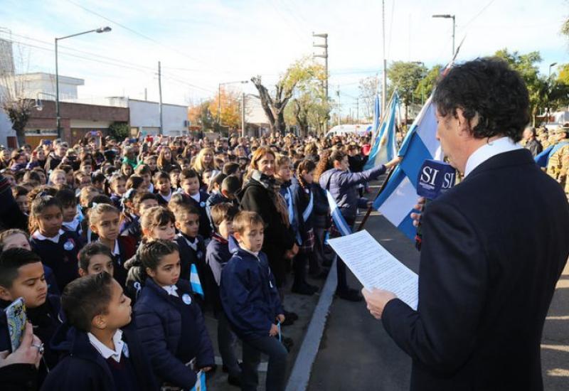 El intendente de San Isidro, Gustavo Posse, presidió el acto en la plaza Manuel Belgrano, en el que alumnos de cuarto grado de escuelas públicas y privadas de estas localidades prometieron lealtad a la bandera.