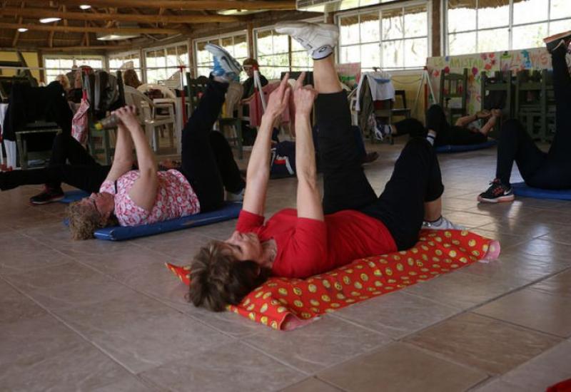 Silvia Aguirre se suma a la charla y asegura que no puede creer el estado físico que logró con esta actividad. “Hace 11 años que vengo y no sólo me divierto sino que mejoro mi salud día a día. Dejé de fumar y de tomar medicamentos. No existe un lugar así en ningún otro distrito. Por eso, hay que disfrutar lo más que podamos”, completa antes de volver a la colchoneta para seguir con la actividad.