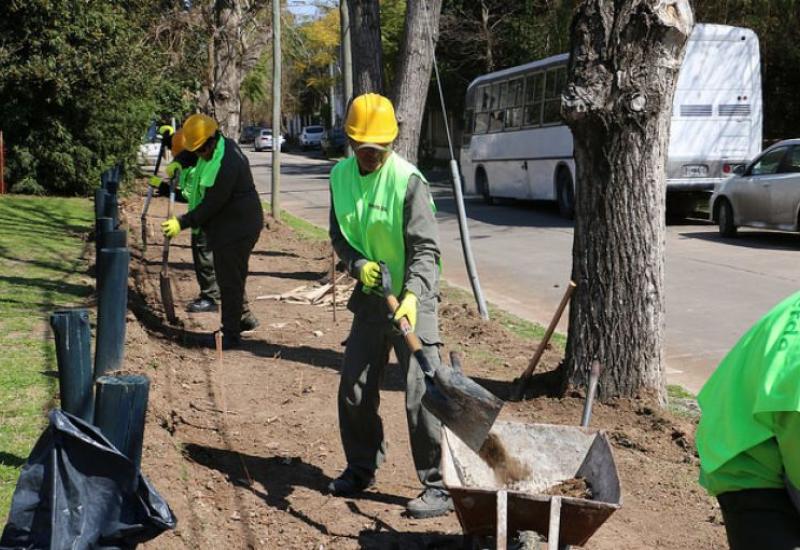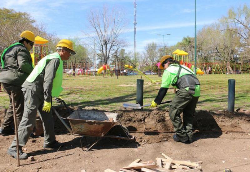 El Municipio construye veredas perimetrales en esta plaza del Bajo de San Isidro. Ya había sumado juegos y luminarias LED