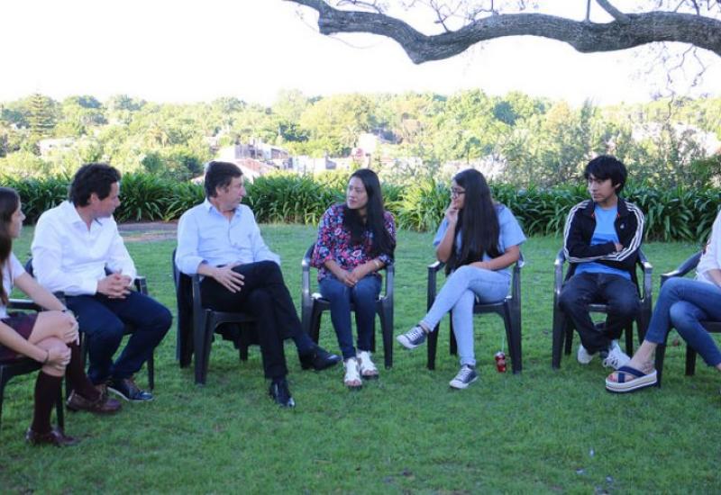 El Director General de Cultura y Educación de la Provincia de Buenos Aires, Gabriel Sánchez Zinny, y el intendente de San Isidro, Gustavo Posse, se reunieron con alumnos sanisidrenses en los jardines de la histórica Quinta Los Ombúes.