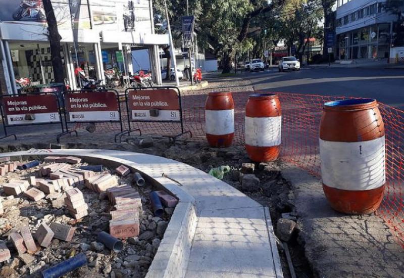El municipio trabaja en el cruce de Av. Libertador y Lavalle, donde realiza la ampliación de la esquina y construye un sendero peatonal elevado para ordenar el recorrido peatonal en este sector, principalmente utilizado por alumnos.