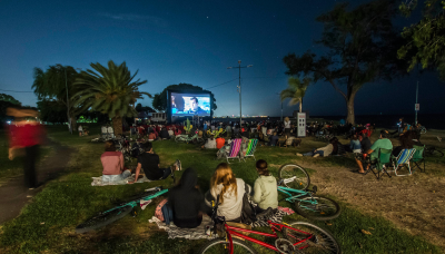 Más de 600 personas disfrutaron anoche del cine, la naturaleza y el encuentro con familiares y amigos en Pacheco y el río, Martínez.